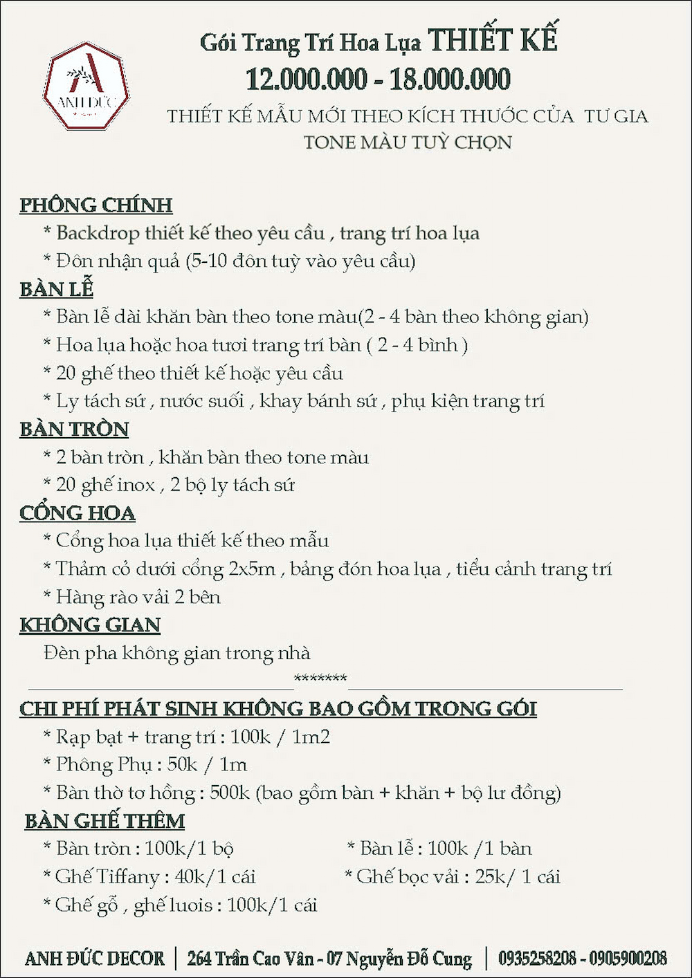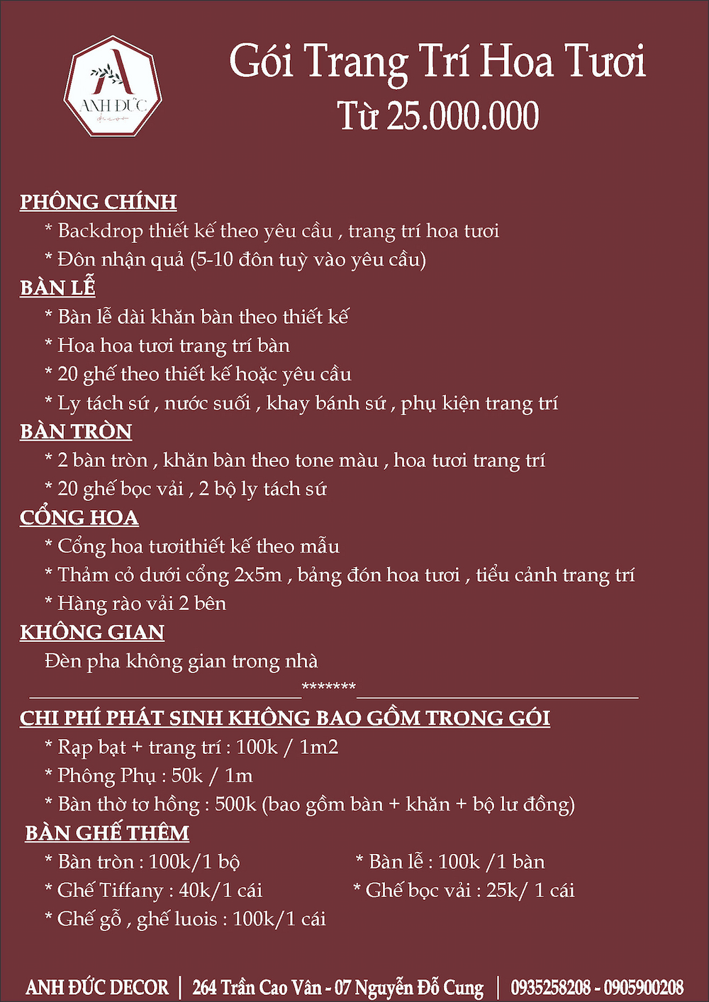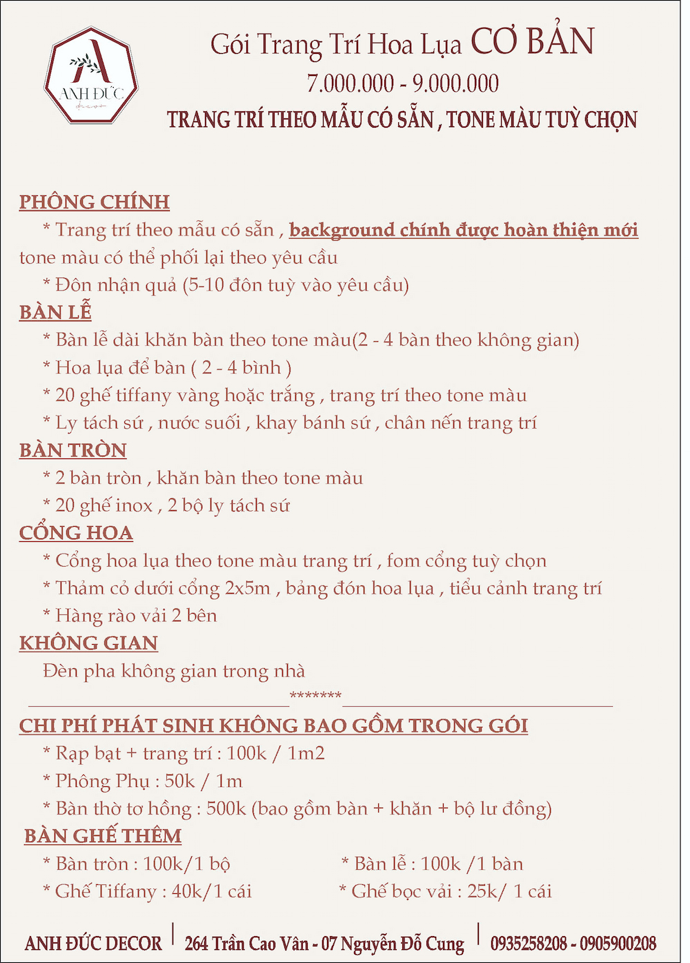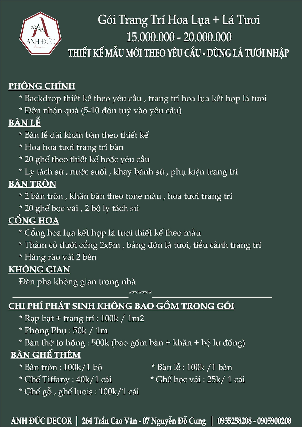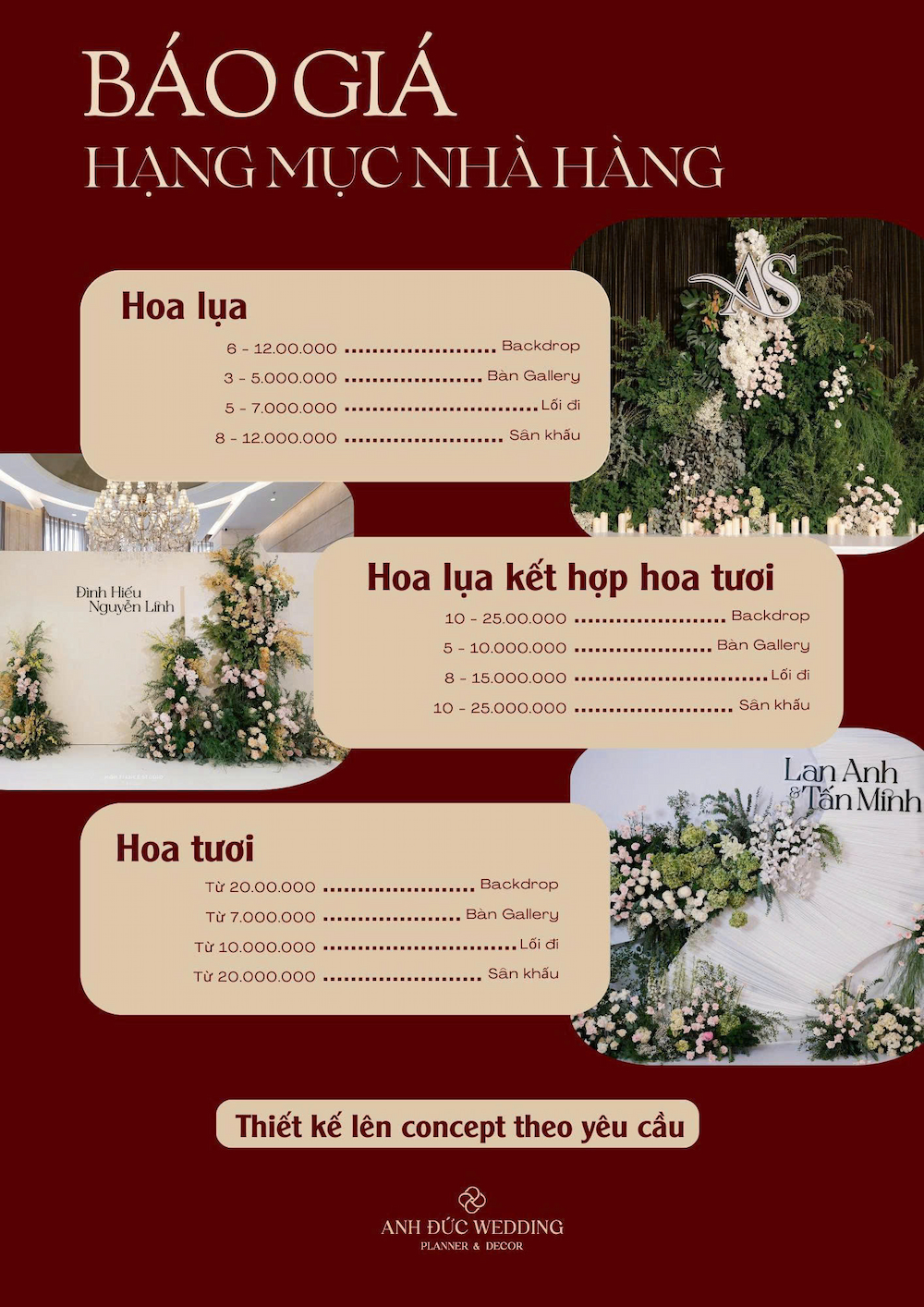 Tham khảo thêm tại Fanpage: https://www.facebook.com/AnhDucWeddingDecor/