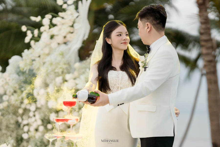 Anh cũng xử lý ánh sáng, bố cục và màu sắc theo hướng dịch vụ cao cấp, phù hợp với các buổi chụp từ lễ gia tiên đến tiệc cưới, hoặc chuyến du lịch cưới.