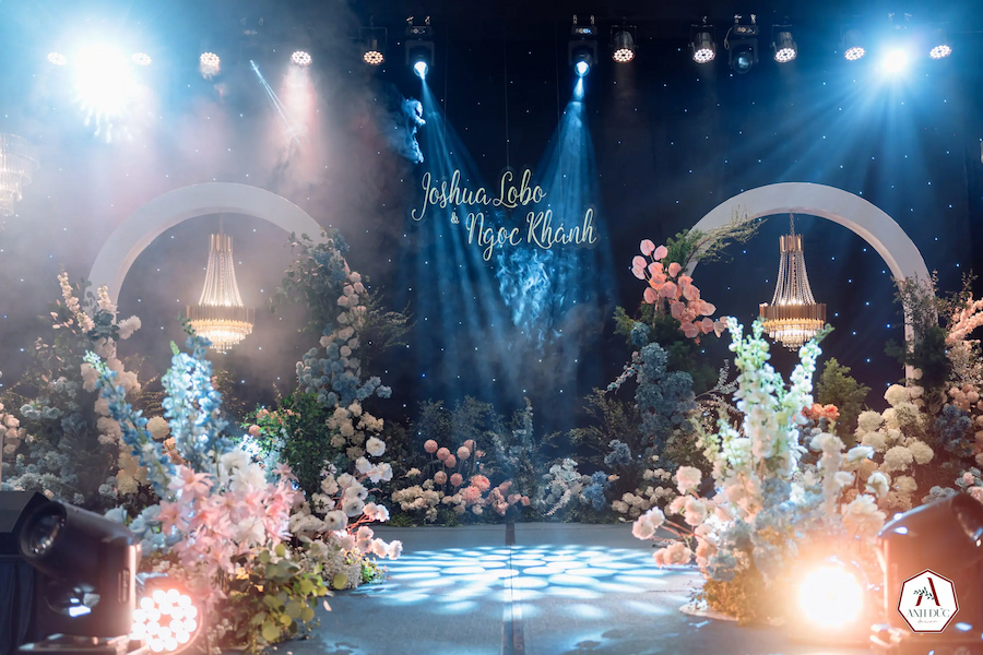 Không nên quên việc sử dụng ánh sáng để làm nổi bật các điểm nhấn trang trí, như bàn tiệc hay cổng cưới. Ánh sáng nhẹ nhàng nhưng đủ sức tôn vinh các chi tiết trang trí sẽ khiến ngày cưới trở thành một hành trình đầy cảm xúc, khó quên.