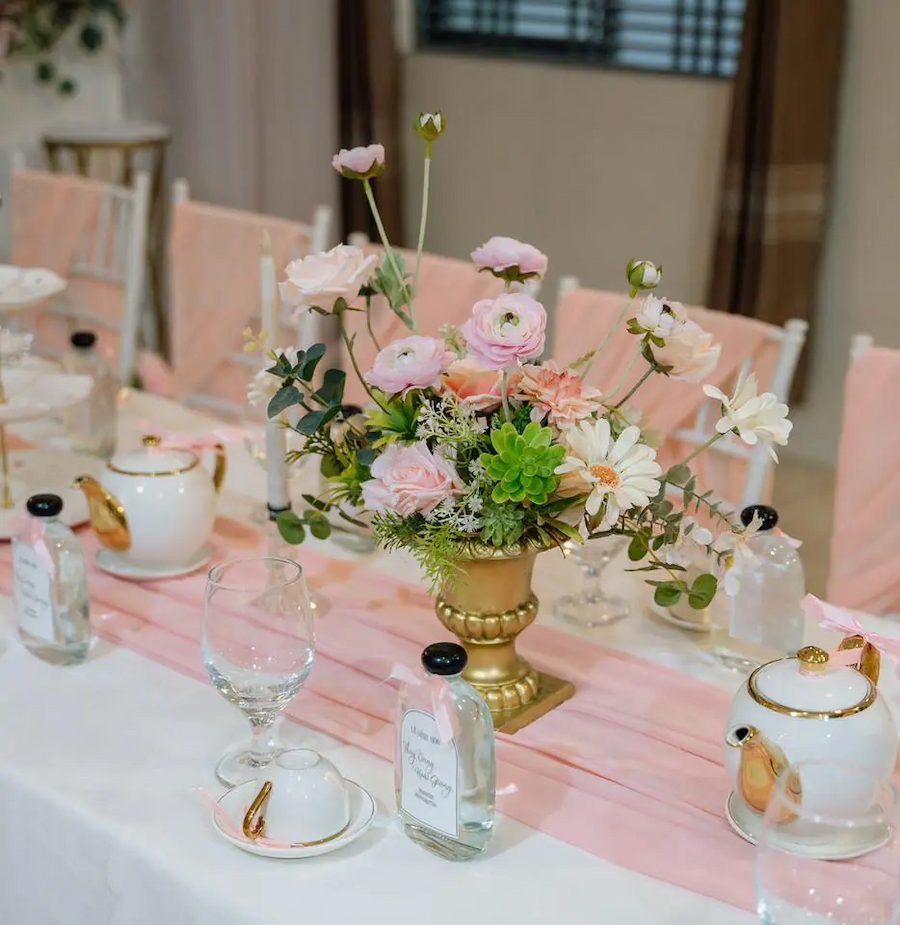 Những chú chim cất cánh trong không gian ngập tràn sắc hồng, như lời thề nguyện mãi mãi bên nhau trong lễ đính hôn này.