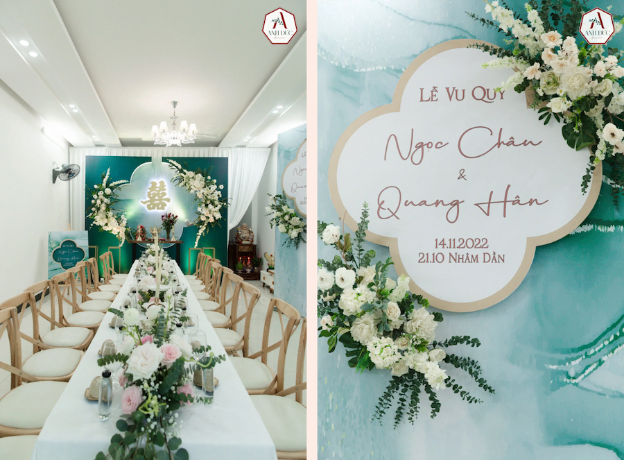 Và vì yêu thích màu xanh lá, nên Anh Đức Decor đã thiết kế lên mẫu mới theo sở thích của cô dâu.