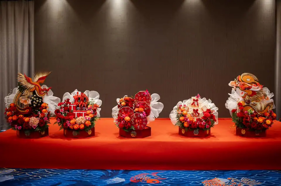 Hoa thiên điểu kiêu hãnh vươn mình giữa không gian trang trọng, như lời chúc phúc cho một tình yêu vững bền, cùng nhau đi qua mọi thăng trầm của cuộc sống. Giữa sắc màu truyền thống và hơi thở hiện đại, mọi thứ đều được chuẩn bị chỉn chu, để ngày quan trọng nhất của hai gia đình mãi là kỷ niệm đẹp.