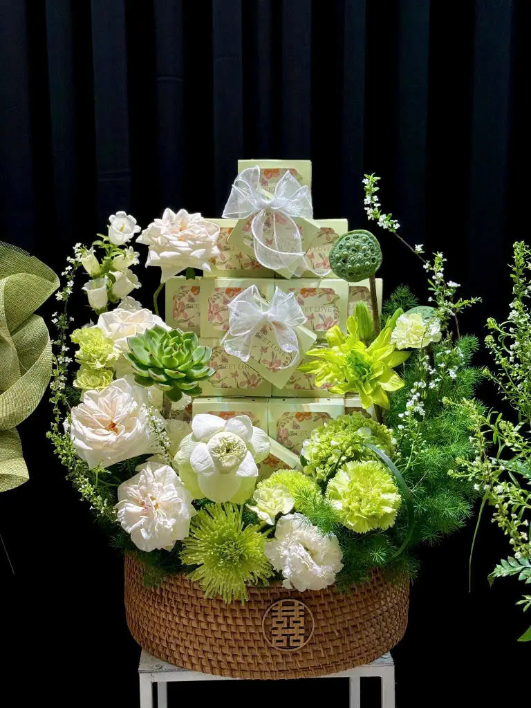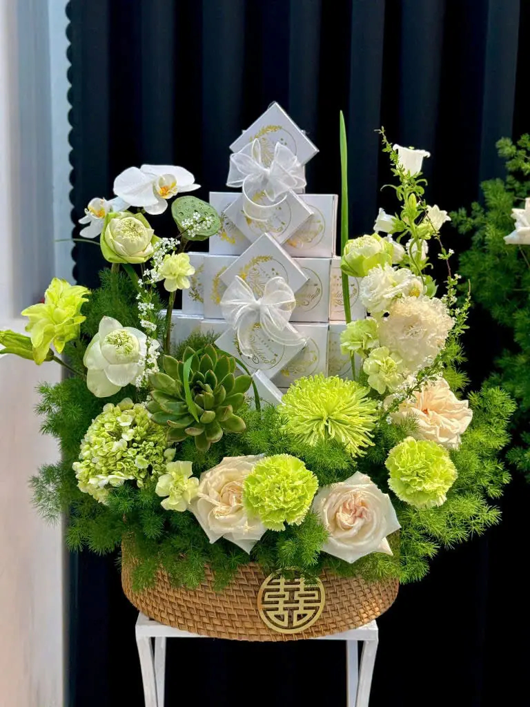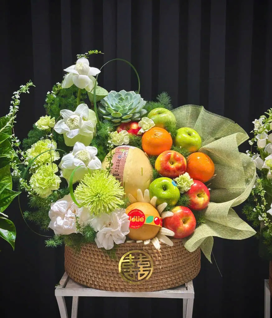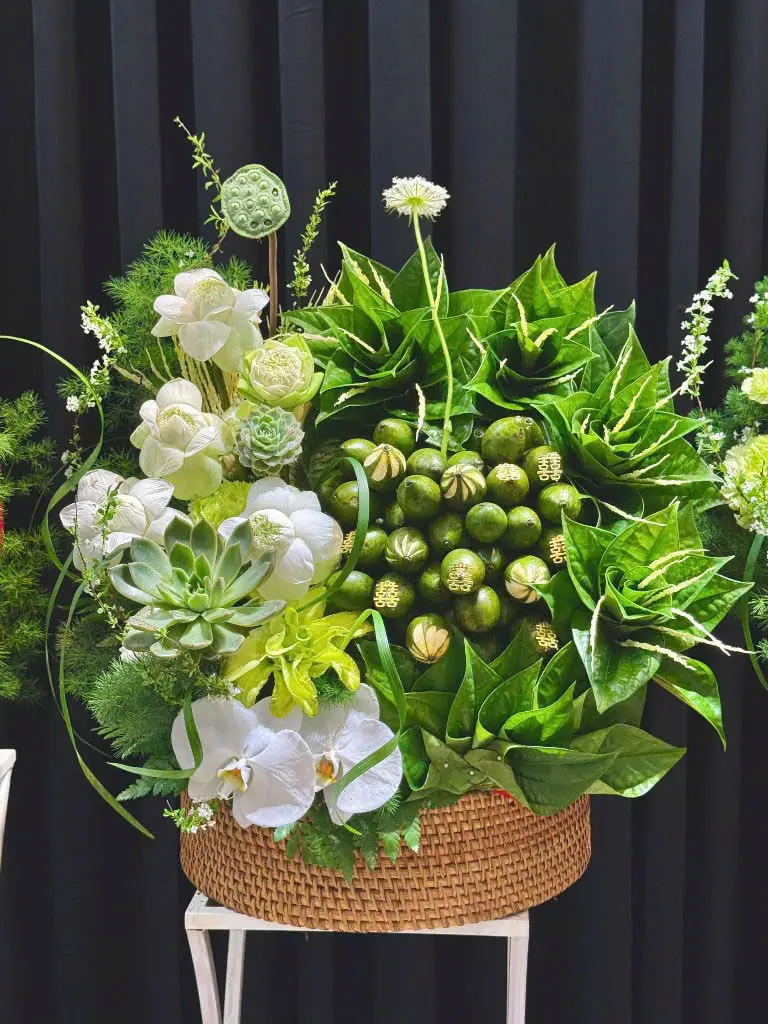 Mâm ngũ quả xanh – trắng không chỉ mang lại cảm giác thanh mát, nhẹ nhàng mà còn mang ý nghĩa bình an và thịnh vượng.