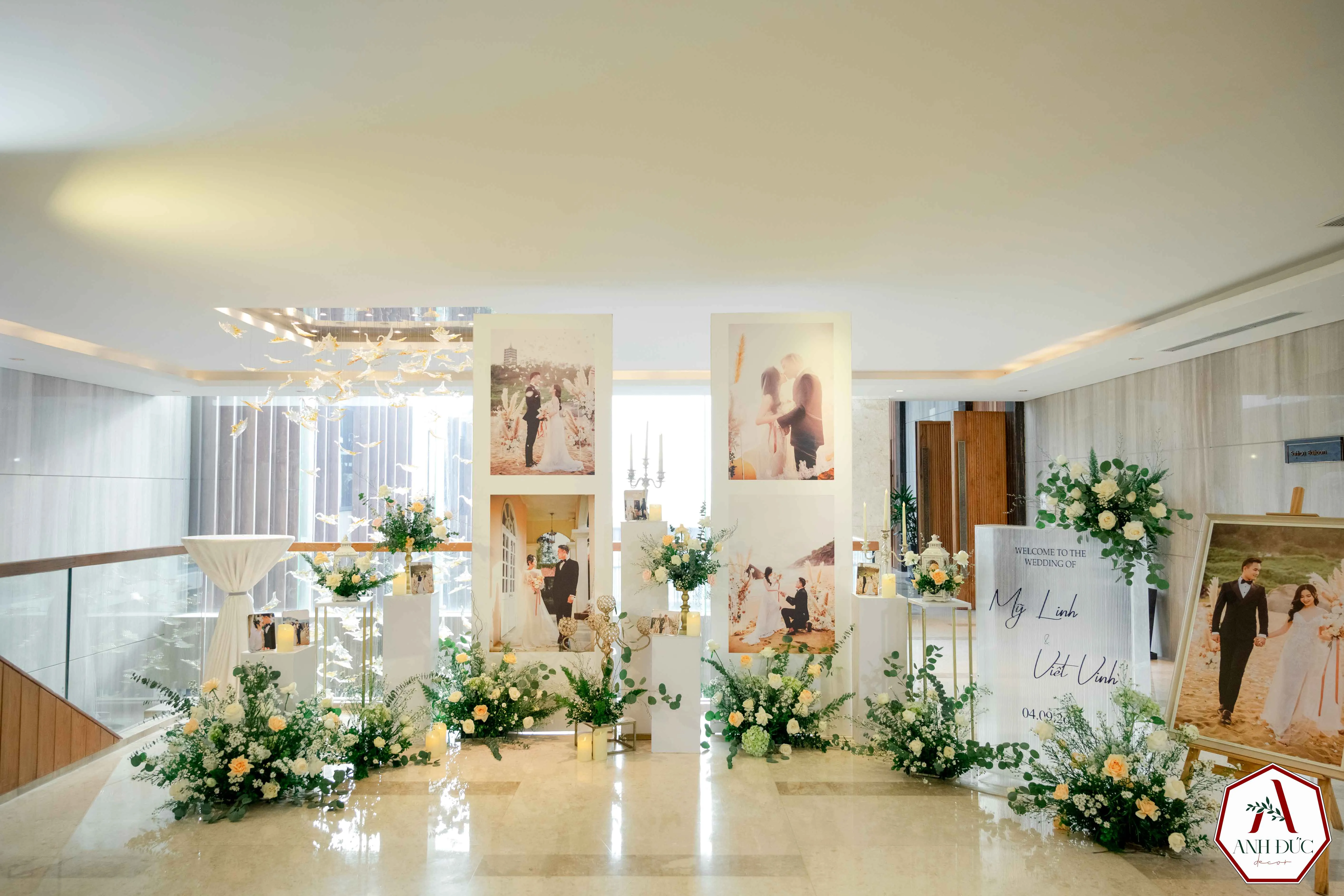 Với thiết kế mới nhất, Anh Đức Wedding – Planner & Decor mang đến mẫu trang trí kết hợp backdrop hoa tươi và bàn gallery hiện đại, giúp ngày cưới của bạn trở nên thật ấn tượng và đầy cảm xúc.