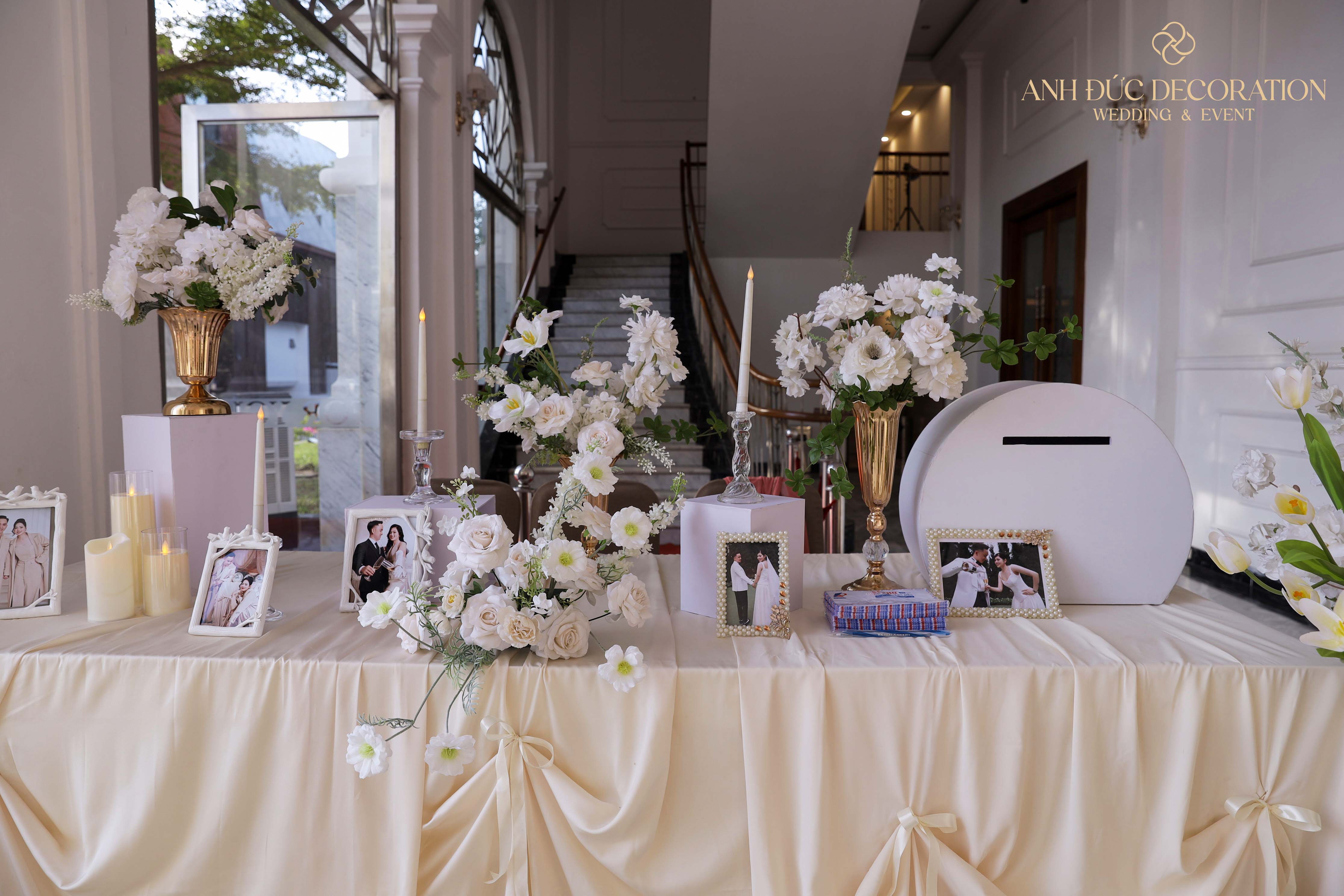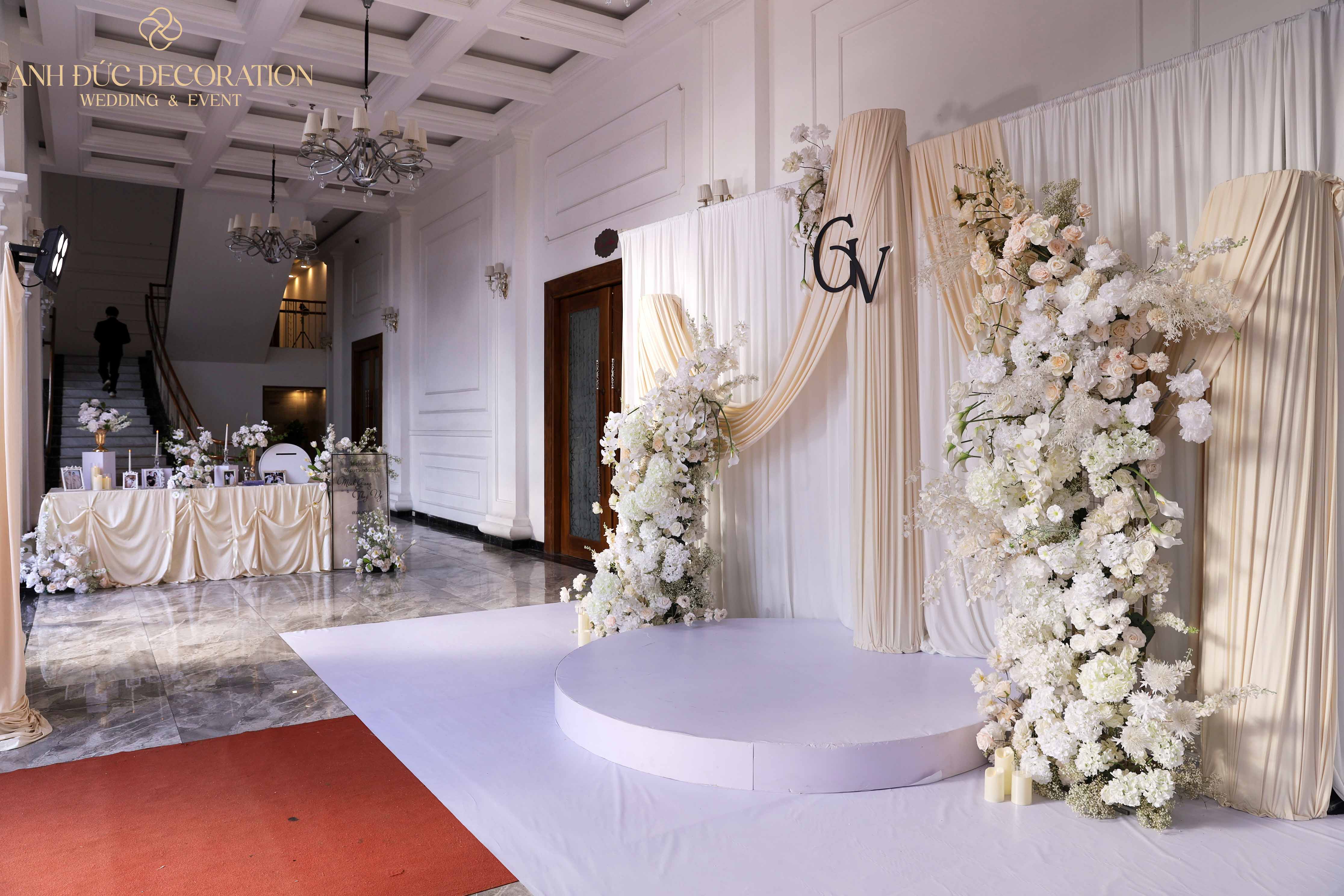 ✨ Với tone màu trắng – kem tinh tế, Anh Đức Decoration mang đến không gian cưới vừa hiện đại, vừa lãng mạn, hoàn hảo cho những cặp đôi yêu thích sự sang trọng tối giản.
