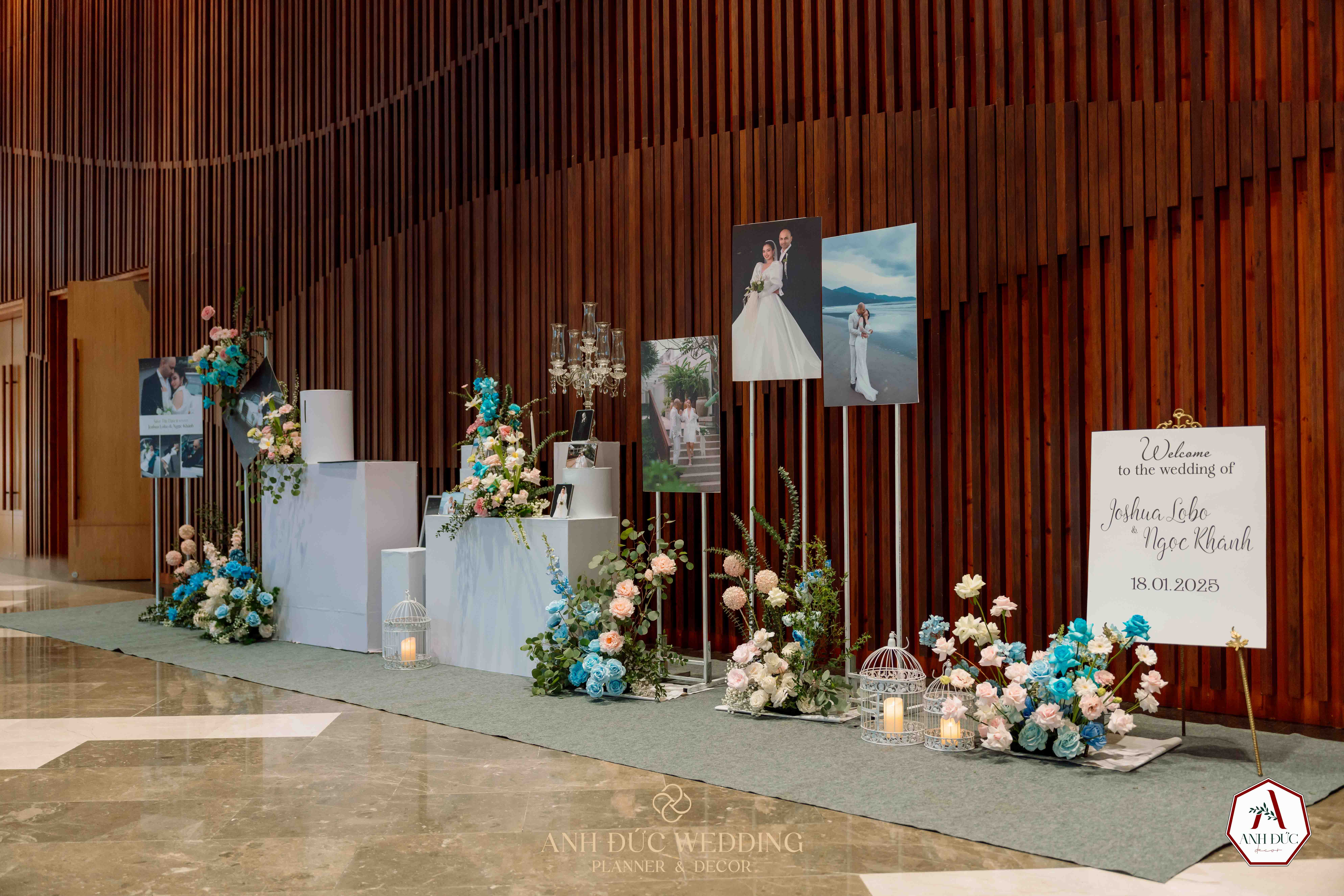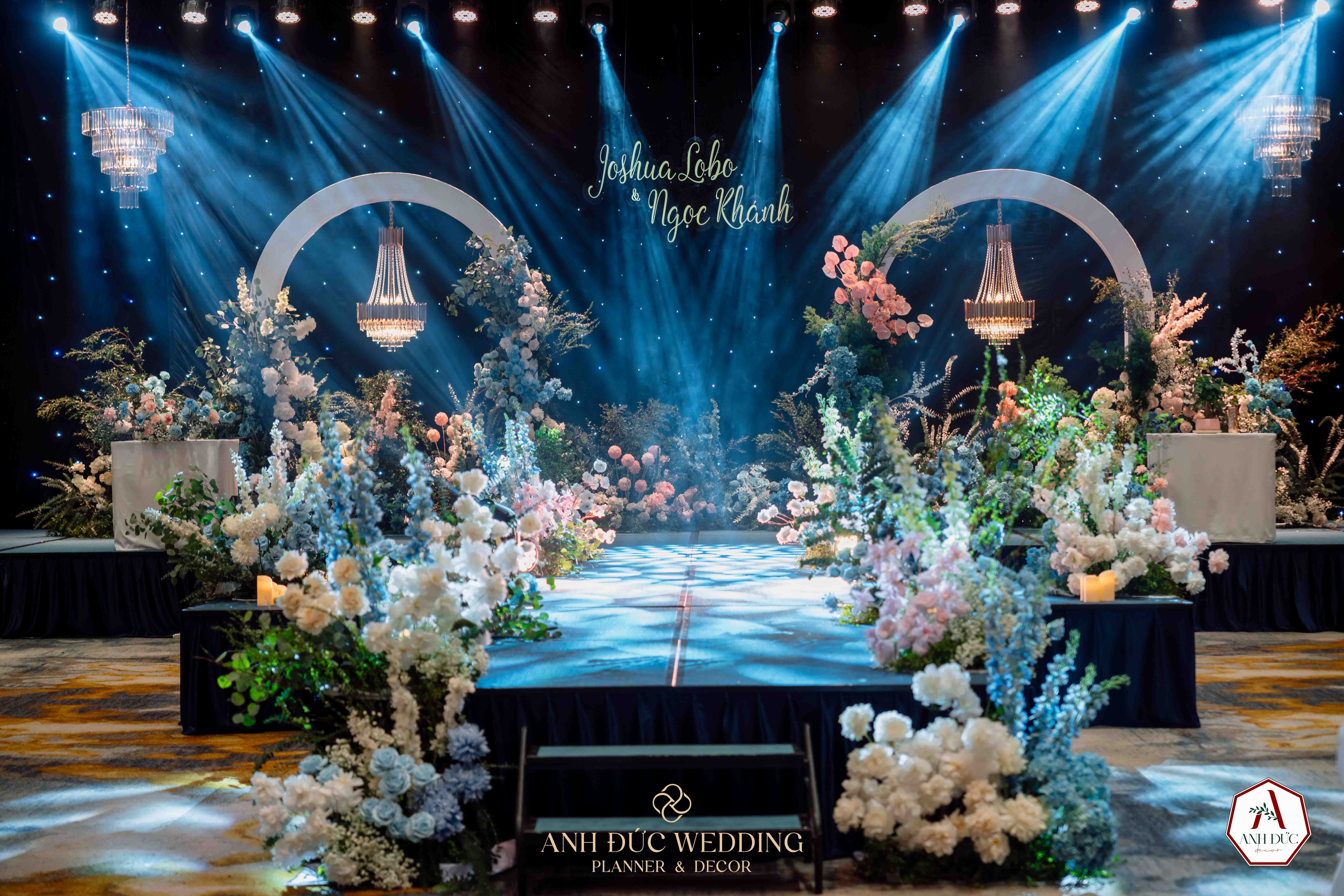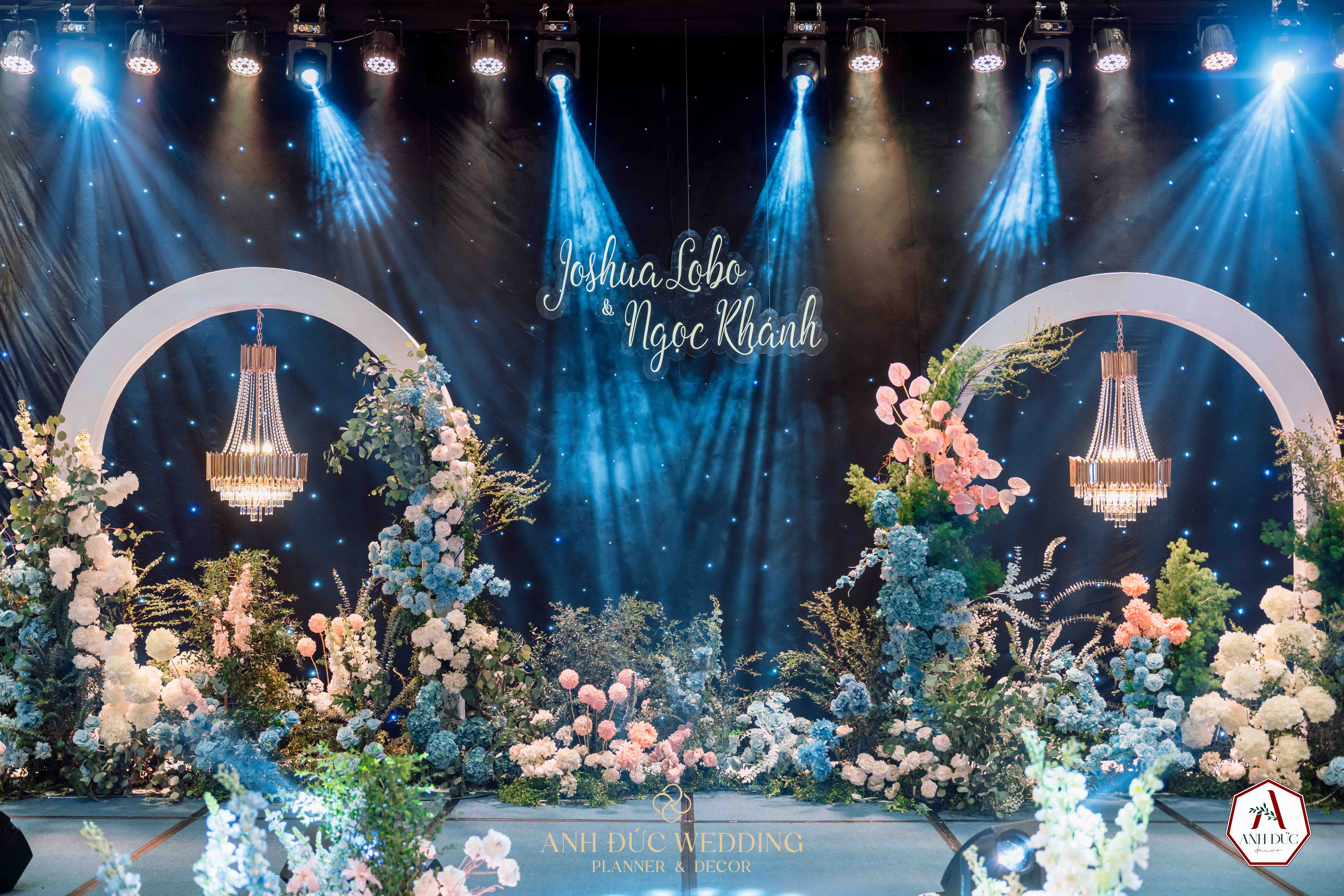 Trong mỗi lễ cưới, không gian trang trí chính là điểm nhấn tạo nên dấu ấn cá nhân của cặp đôi và để lại ấn tượng sâu sắc trong lòng khách mời. Bộ thiết kế sân khấu và backdrop của Anh Đức Wedding Planner & Decor dành cho tiệc cưới của Joshua & Ngọc Khánh là một ví dụ hoàn hảo cho sự kết hợp giữa tinh tế, sang trọng và nghệ thuật.