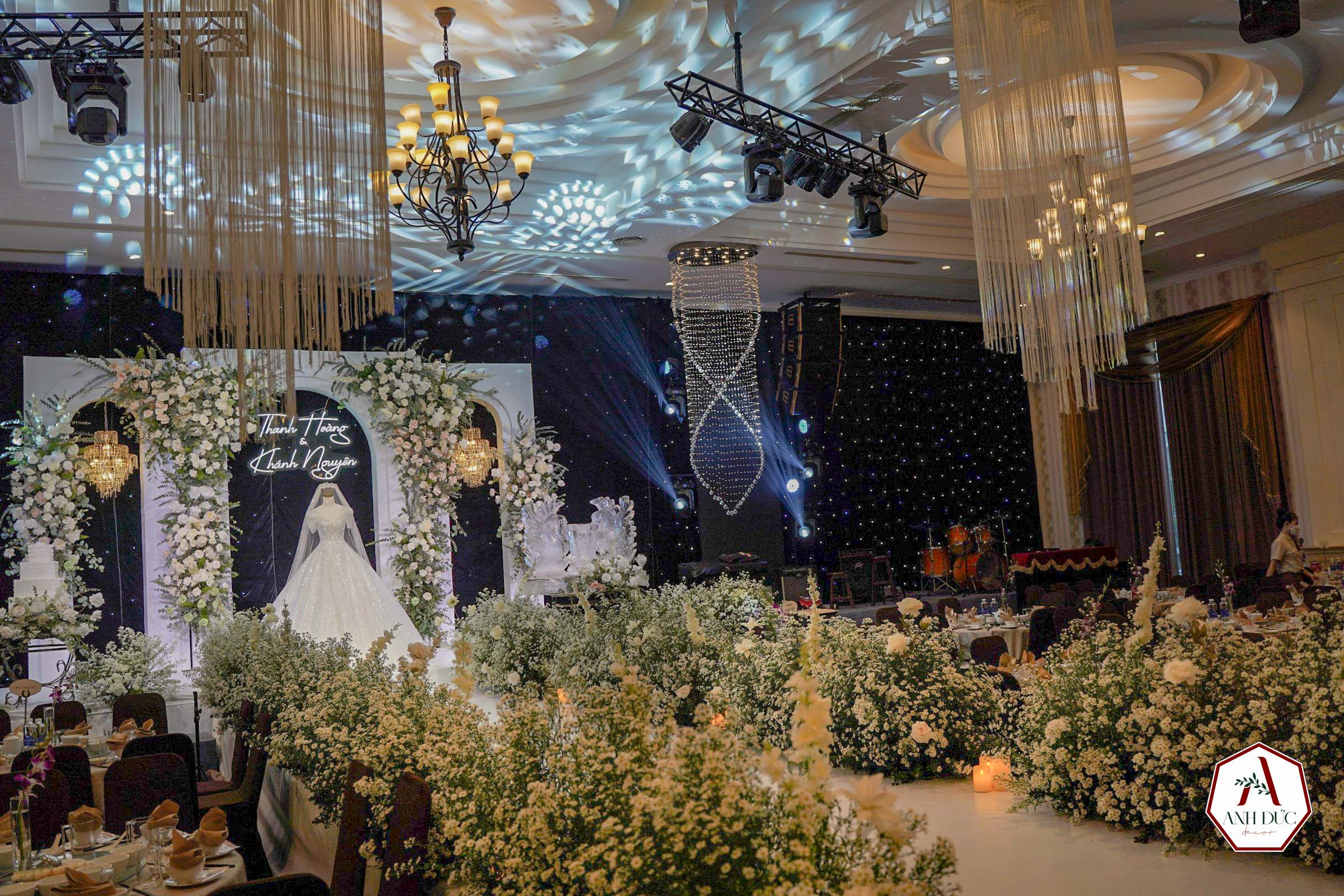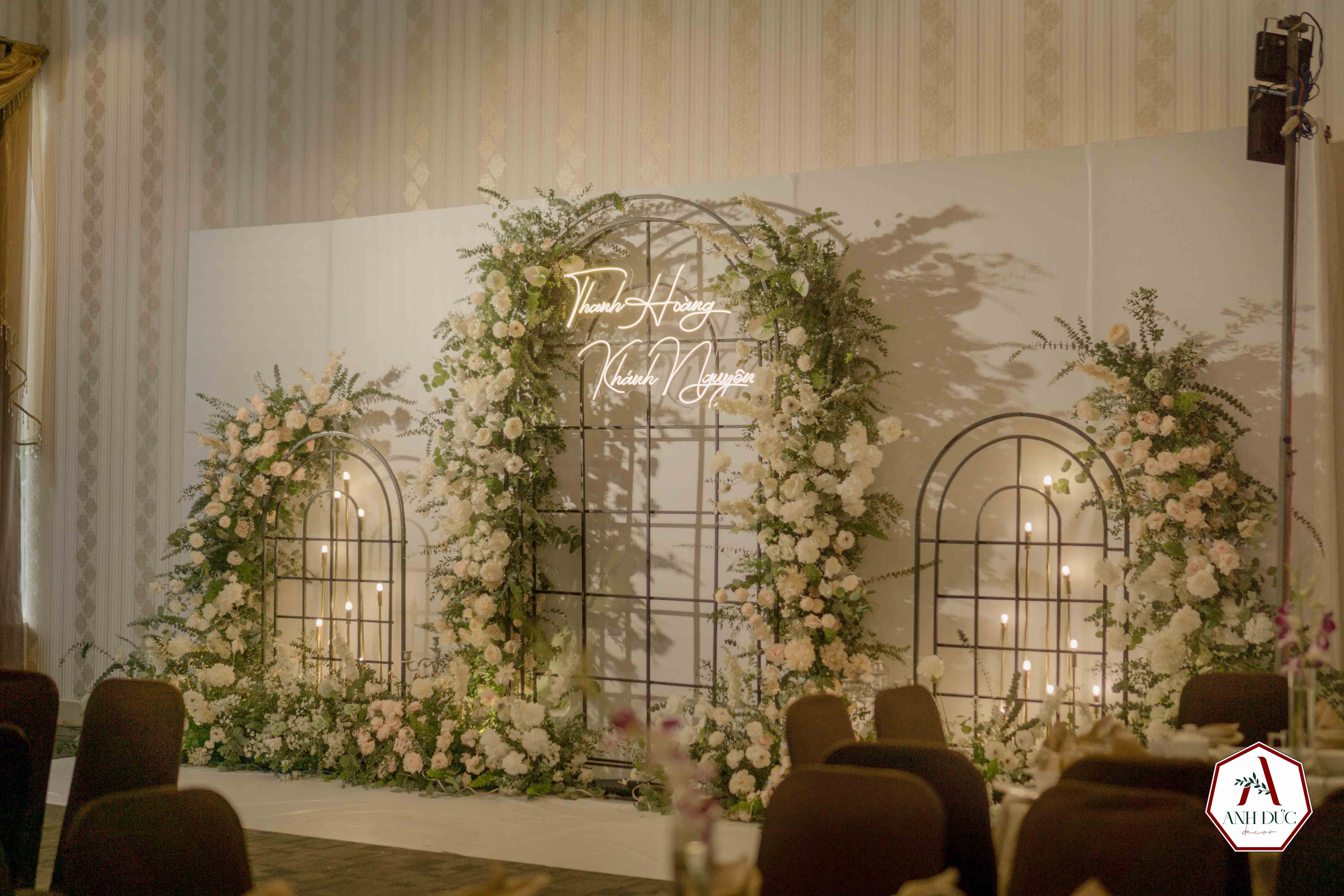Tại Anh Đức Wedding , chúng tôi mang đến giải pháp trang trí trọn gói từ backdrop, sân khấu, cổng hoa, bàn gallery đến khu vực đón khách – tất cả đều được thiết kế đồng bộ, tinh tế, phù hợp với phong cách và mong muốn riêng của từng cặp đôi.